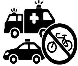 Only Emergency Service Vehicles such as fire brigade truck, ambulance and police vehicle are permitted to use the pedestrian walks in case of an emergency. Operation of other vehicles such as bicycles and motorcycles on pedestrian walkway is prohibited at all times. |