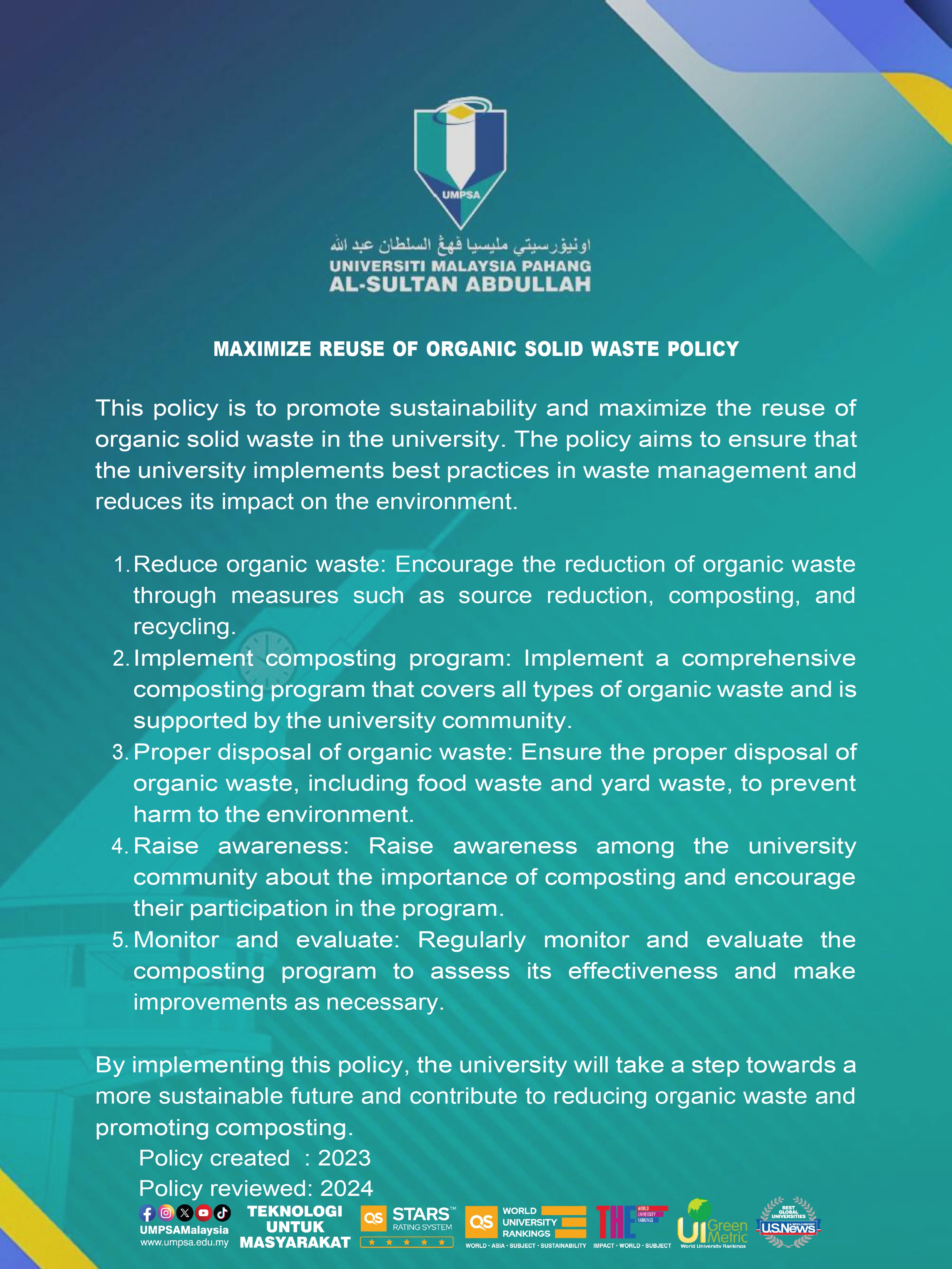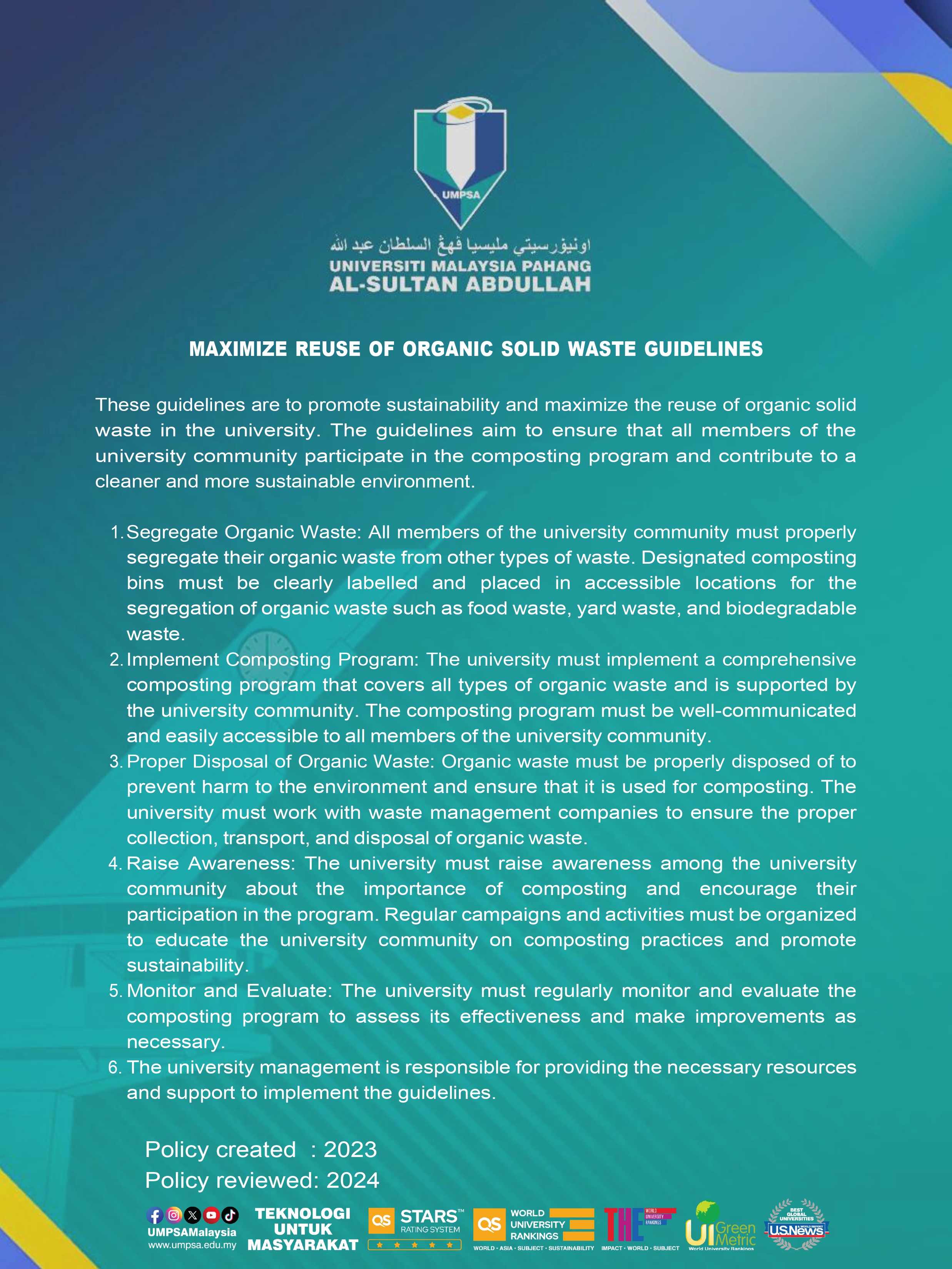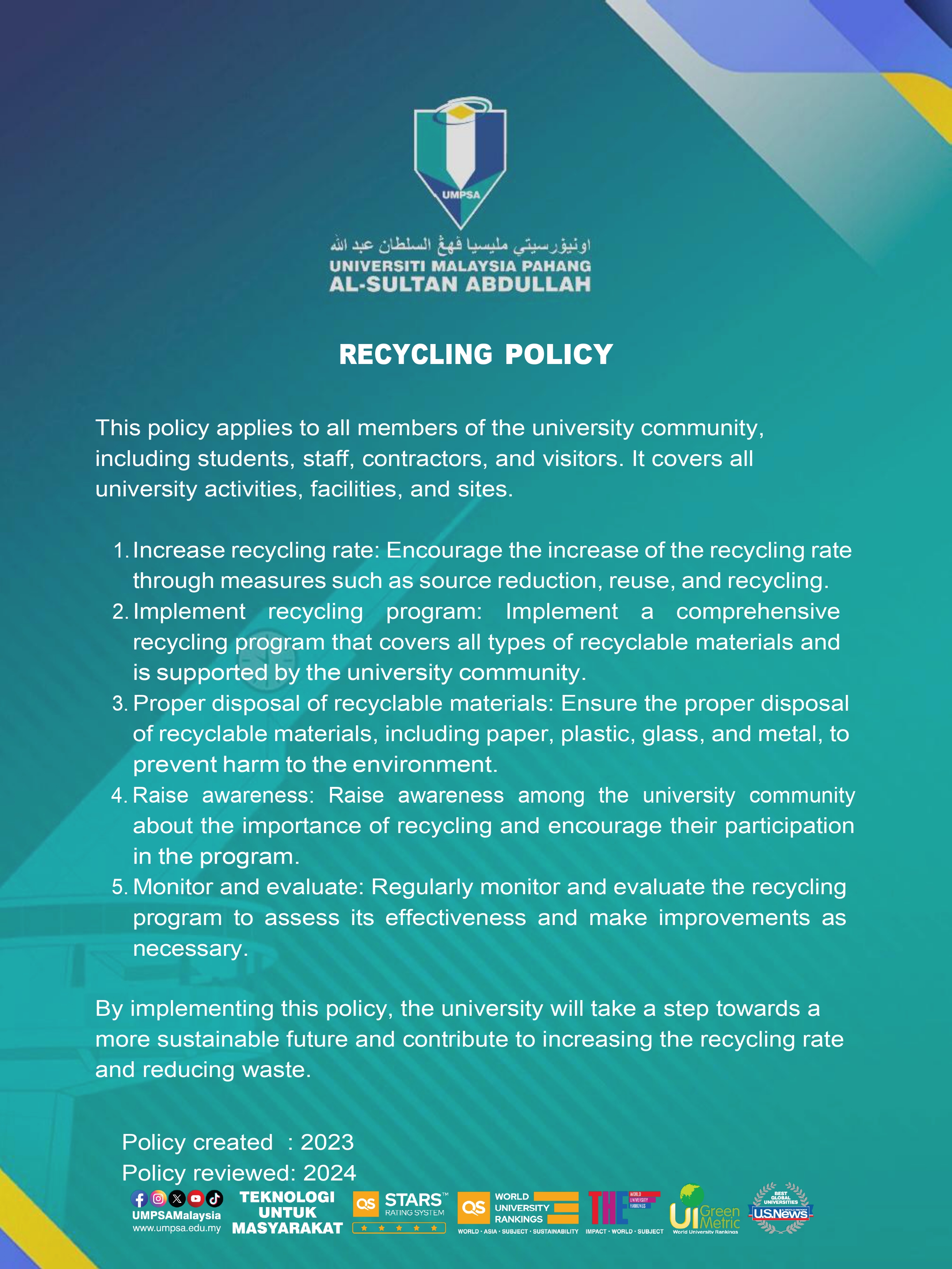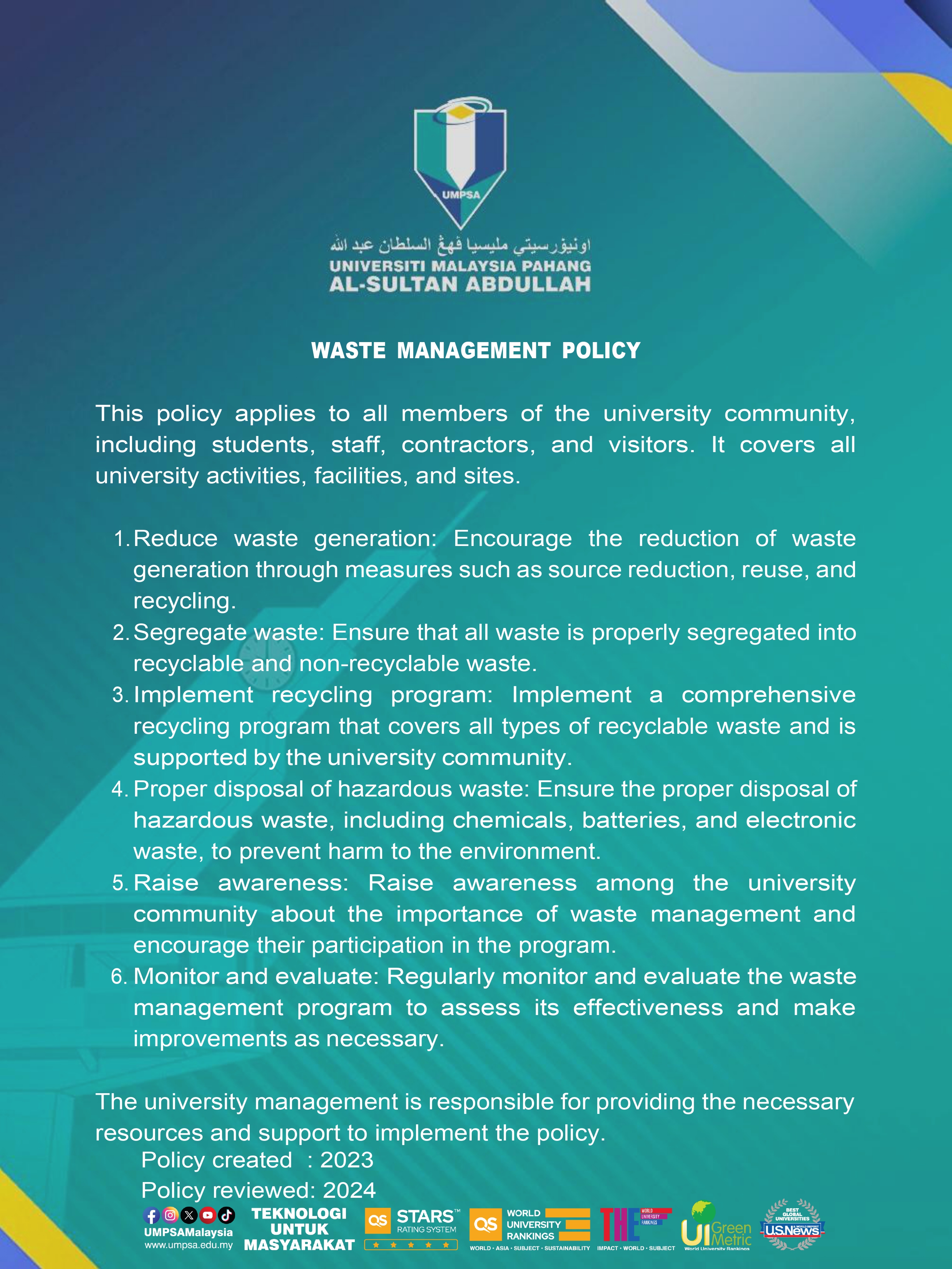 • UMPSA Campus Sustainability Healthy Lifestyle Policy