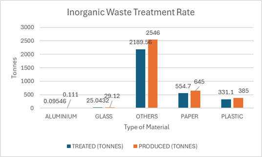 As a best practice, UMPSA complemented these measures with campus-wide awareness campaigns, collaboration with local recycling and waste treatment partners, and monitoring by the Sustainable Development Centre to ensure process efficiency. Through these integrated efforts, 86% of the waste generated in 2024 was successfully treated and recovered, significantly reducing the university’s environmental footprint and contributing directly to SDG 12.3 – Reduction of Waste Generation through Prevention, Reduction, Recycling, and Reuse.