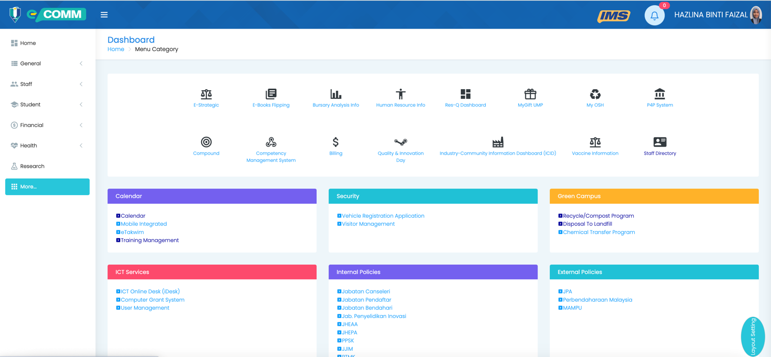 Figure 1: UMPSA Green Dashboard