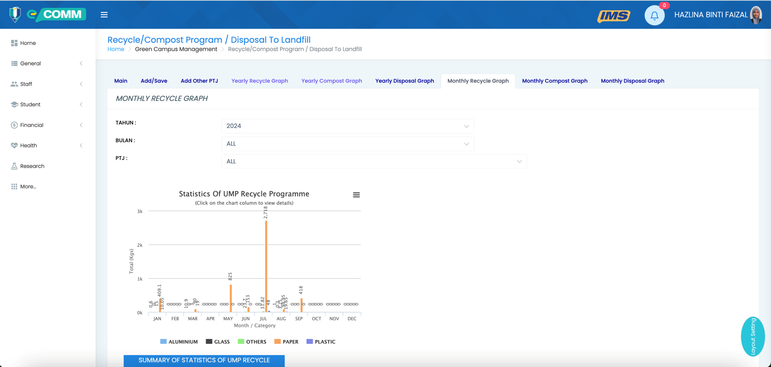 UMPSA demonstrates its strong commitment to responsible waste management and data-driven sustainability practices through the implementation of a comprehensive waste tracking system across the entire campus.