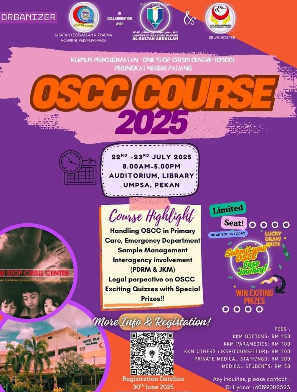 UMPSA also supports psychosocial well-being and crisis response preparedness through the OSCC (One Stop Crisis Centre) Course. This training enhances awareness and competency in handling cases involving domestic violence, abuse, and trauma.