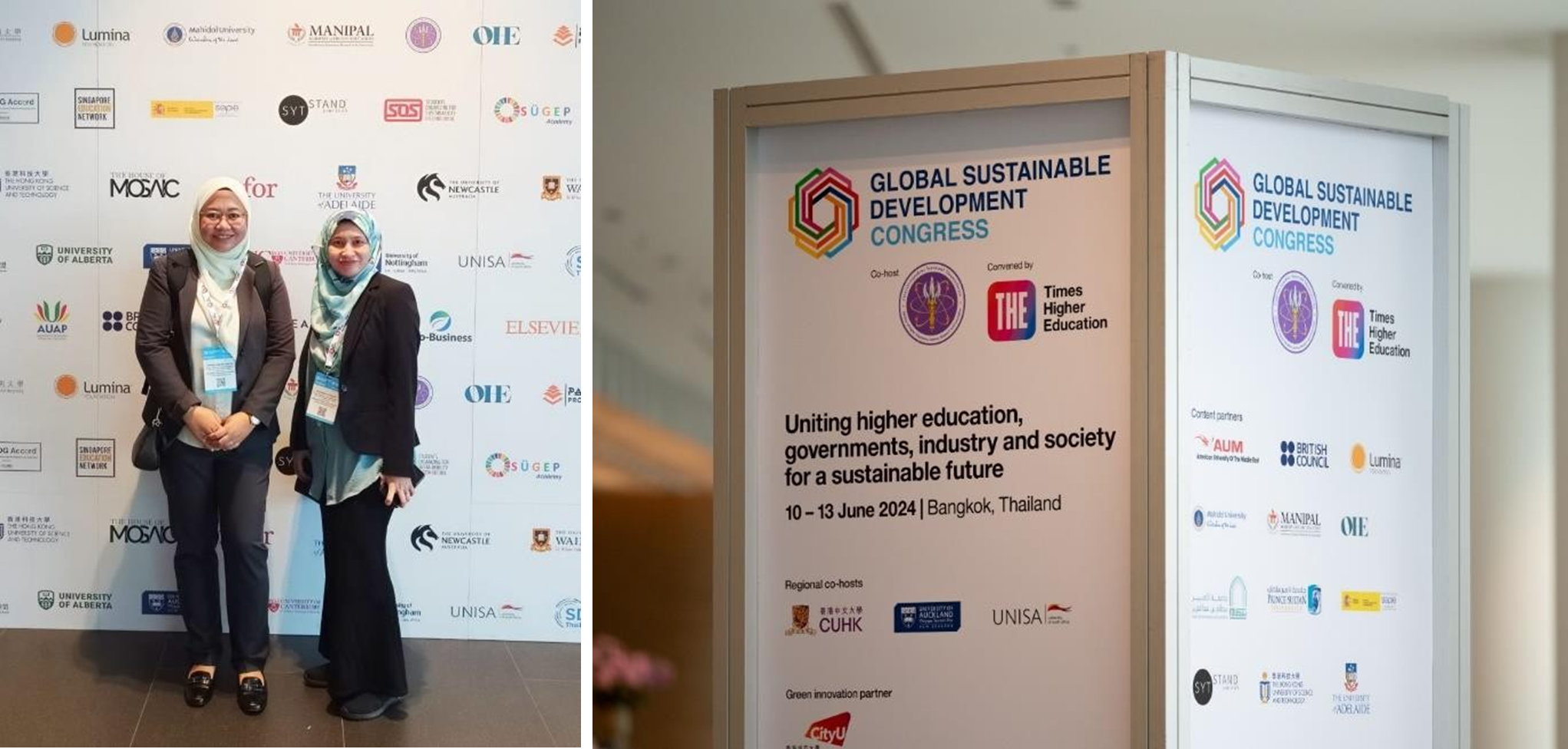 The presence of two (2) delegates from UMPSA, Associate Professor Ts. Dr. Herma Dina Setiabudi, Senior Director, Centre for Strategic Management and Quality and Dr. Suhaidah Hussain, Director, Centre for Sustainability Development at GSDC 2024 underscored the university’s proactive role in supporting global partnerships and sustainability leadership.